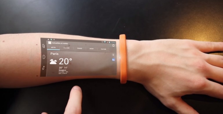 На сегодняшний день из наиболее производительных устройств, которые можно всегда носить с собой или надевать на тело, можно выделить разве что смартфоны да “умные часы”. Но недавно появилась информация о новом браслете, который в буквально смысле может превратить участок предплечья человека в небольшой сенсорный экран. Таким образом в прямом смысле слова ваш смартфон будет всегда с вами.